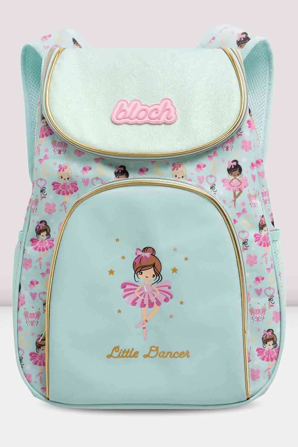 Stylish and exceptionally functional, it’s the ultimate choice for your young performer. Available in three exclusive ballerina prints, and crafted in 3 beautiful shades. Lots of pockets and strong rear straps Features Glitter top zip opening with Bloch logo Front zip pocket with internal slip pocket Padded back and adjustable shoulder straps Dual side elasticised mesh slip pockets Top handheld strap Internal padded sleeve, with name tag and velcro closure Ballerina printed pattern Gold hardware Dimensions: W32 x H44 x D20cm