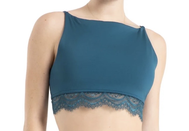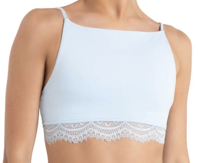 This bra top features a high neck design that provides modest coverage and comfortable support for every class. Dyed-to-match lace trim adds a touch of femininity and elegance to the design, making it perfect to wear on its own or even layering under a flowy sheer top. The adjustable straps allow for a customised fit, ensuring maximum comfort and support.