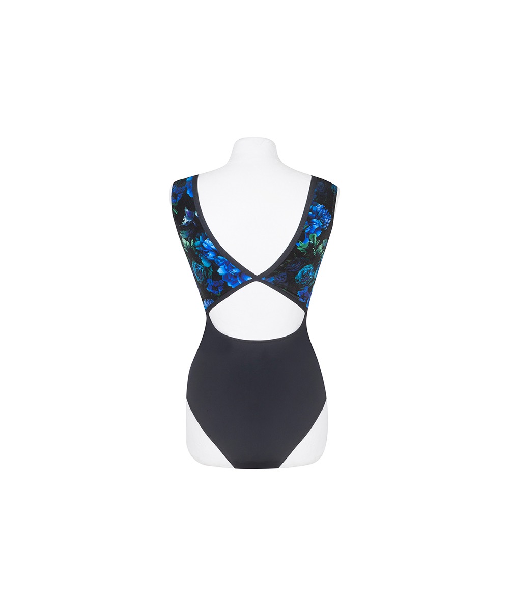 Sleeveless boat neckline leotard, a superb mesh front and velvet back in deep jewel colours. A very special item for your dance wardrobe